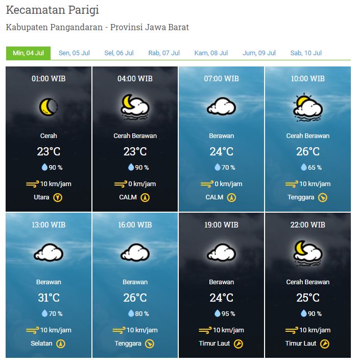 Laporan Harian & Prakiraan Cuaca Kabupaten Pangandaran – Minggu, 04 Juli 2021