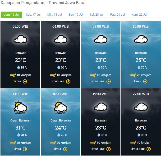 Laporan Harian & Prakiraan Cuaca Kabupaten Pangandaran – Jum’at, 16 Juli 2021