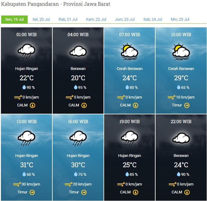 Laporan Harian & Prakiraan Cuaca Kabupaten Pangandaran – Senin, 19 Juli 2021