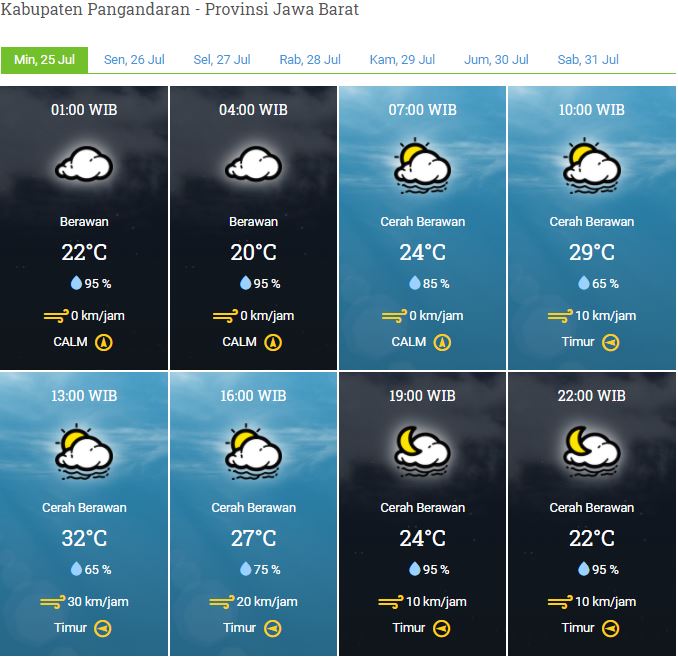 Laporan Harian & Prakiraan Cuaca Kabupaten Pangandaran – Minggu, 26 Juli 2021