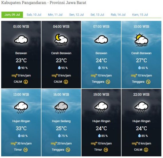 Kecepatan Angin : 0 – 20 km/jam