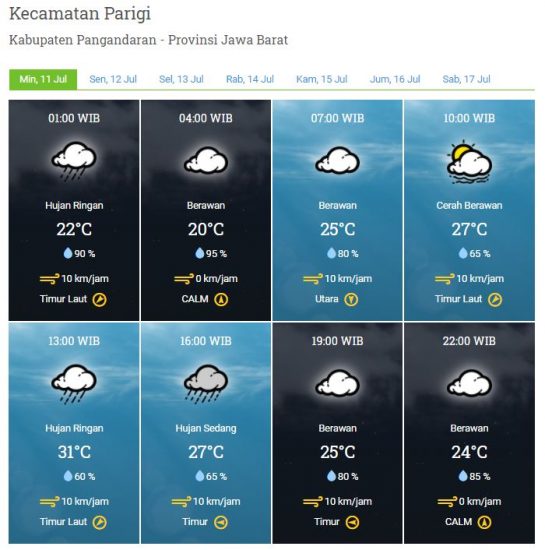 Kecepatan Angin : 0 – 10 km/jam