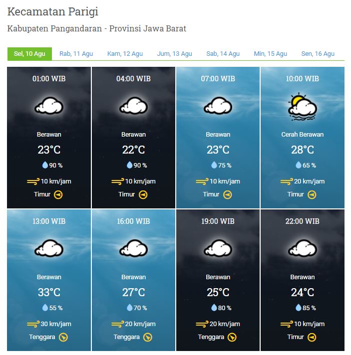 Laporan Harian & Prakiraan Cuaca Kabupaten Pangandaran – Selasa, 10 Agustus 2021