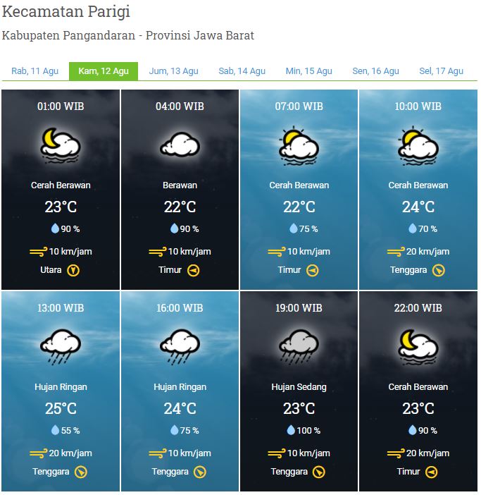Laporan Harian & Prakiraan Cuaca Kabupaten Pangandaran – Kamis, 12 Agustus 2021