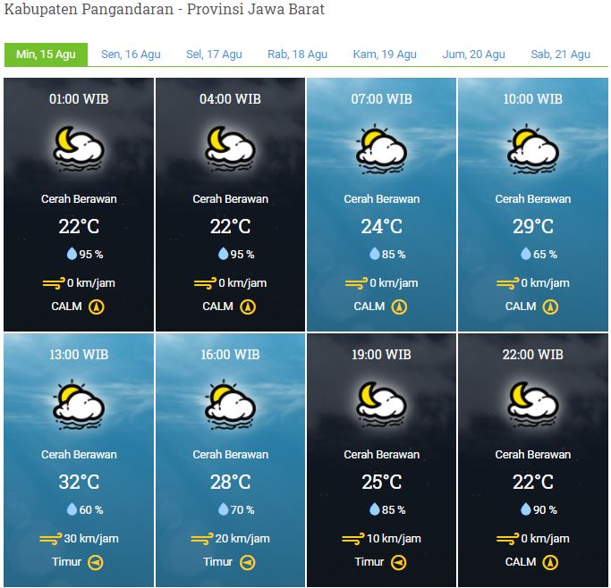 Laporan Harian & Prakiraan Cuaca Kabupaten Pangandaran – Minggu, 15 Agustus 2021
