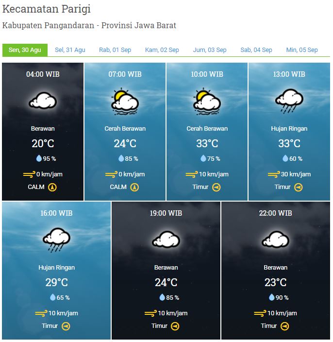 Laporan Harian & Prakiraan Cuaca Kabupaten Pangandaran – Senin, 30 Agustus 2021