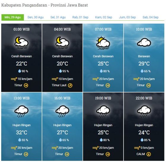 Kecepatan Angin : 0 – 20 km/jam