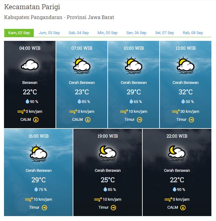 Laporan Harian & Prakiraan Cuaca Kabupaten Pangandaran – Kamis, 02 September 2021