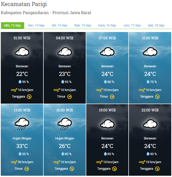 Laporan Harian & Prakiraan Cuaca Kabupaten Pangandaran – Minggu, 12 September 2021