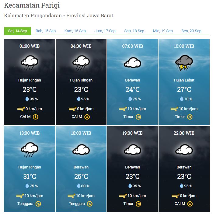 Laporan Harian & Prakiraan Cuaca Kabupaten Pangandaran – Selasa, 14 September 2021