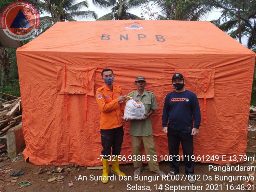 Selasa, 14 September 2021 — Badan Penanggulangan Bencana Daerah (BPBD) Kab. Pangandaran siang tadi memberikan bantuan logistik dan pendirian hunian sementara untuk korban rumah roboh akibat longsor yang terjadi pada senin, 13 September 2021 pukul 02.00 WIB. Rumah tersebut milik Sunardi warga Dusun Bungur RT 02 RW 07 Desa Bungurraya Kecamatan Langkaplancar. Dalam kejadian tersebut […]