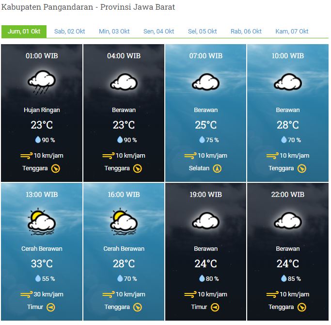 Laporan Harian & Prakiraan Cuaca Kabupaten Pangandaran – Jum’at, 01 Oktober 2021