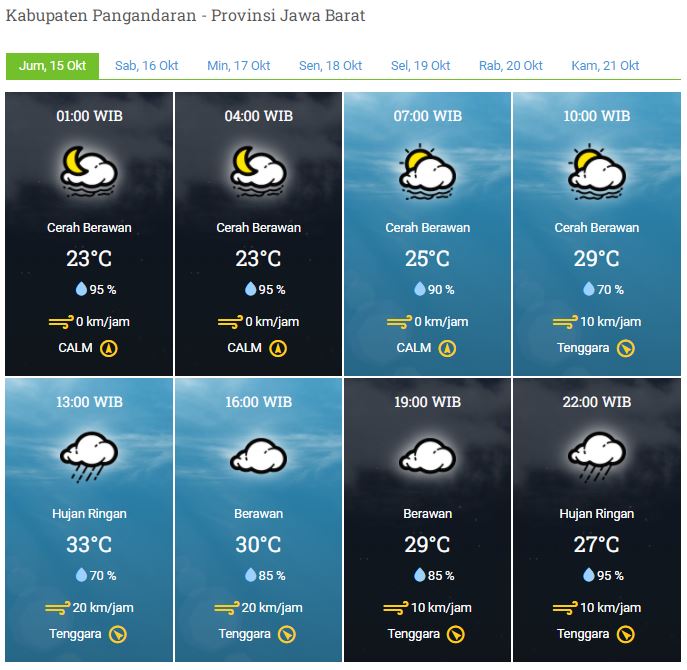 Laporan Harian & Prakiraan Cuaca Kabupaten Pangandaran – Jumat, 15 Oktober 2021