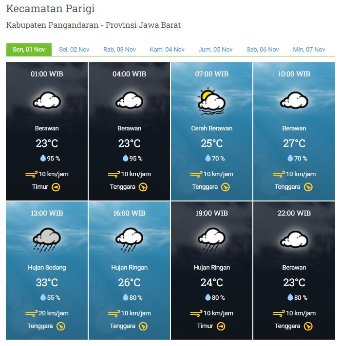 Laporan Harian & Prakiraan Cuaca Kabupaten Pangandaran – Senin, 01 November 2021