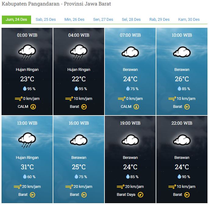 Laporan Harian & Prakiraan Cuaca Kabupaten Pangandaran – Jumat, 24 Desember 2021