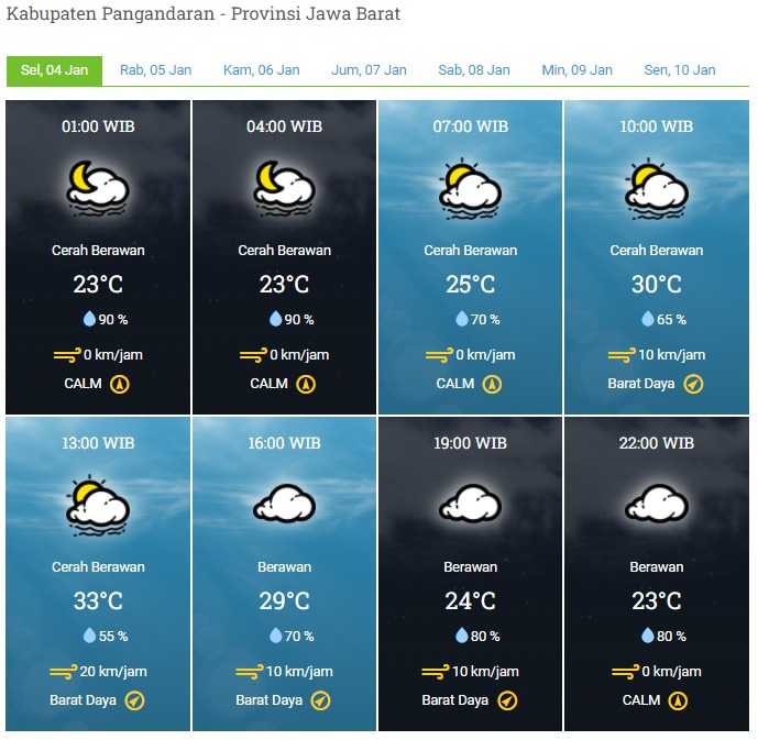 Laporan Harian & Prakiraan Cuaca Kabupaten Pangandaran – Selasa, 04 Januari 2022