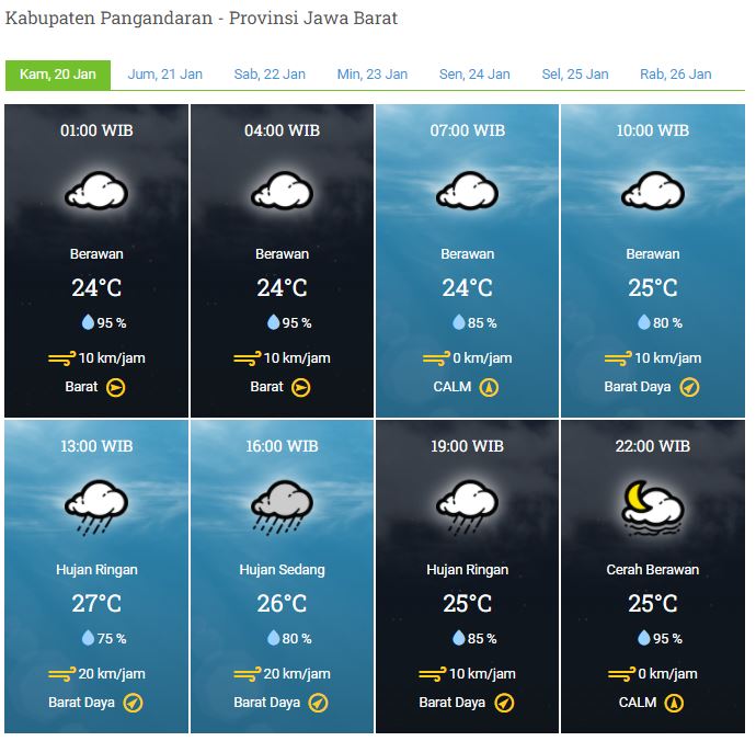 Laporan Harian & Prakiraan Cuaca Kabupaten Pangandaran – Kamis, 20 Januari 2022