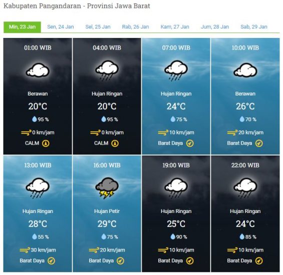Laporan Harian & Prakiraan Cuaca Kabupaten Pangandaran – Minggu, 23 Januari 2022