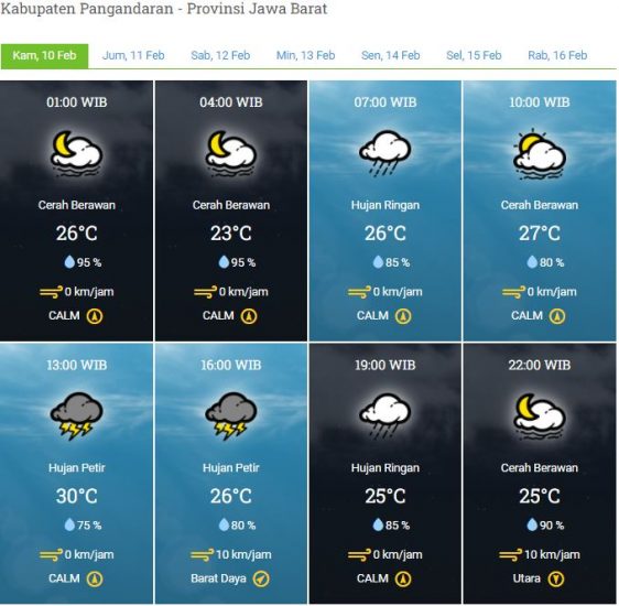 Kecepatan Angin : 0 – 10 km/jam