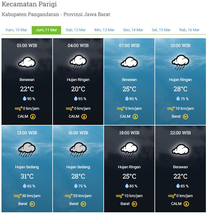 Laporan Harian & Prakiraan Cuaca Kabupaten Pangandaran – Jumat, 11 Maret 2022