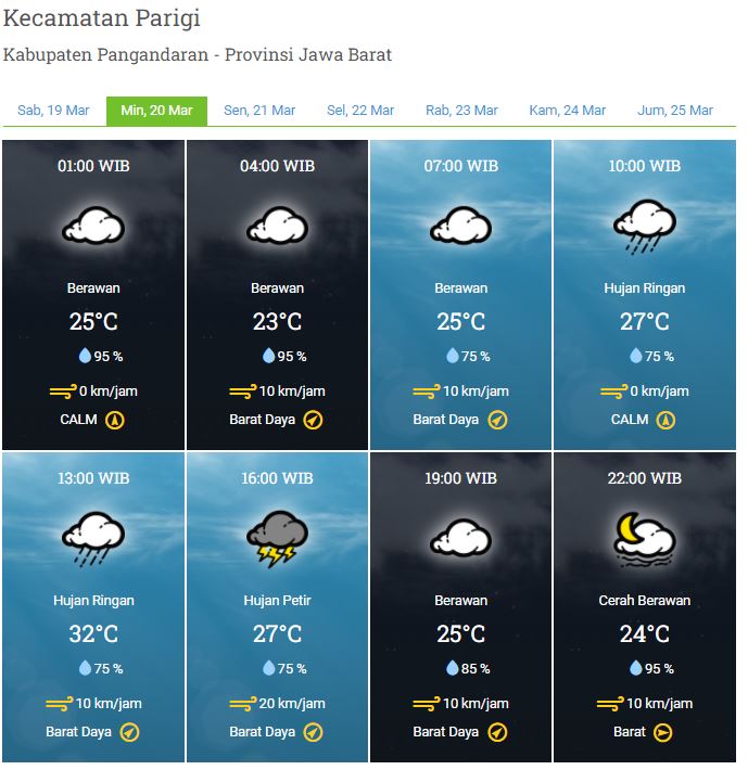 Laporan Harian & Prakiraan Cuaca Kabupaten Pangandaran – Minggu, 20 Maret 2022