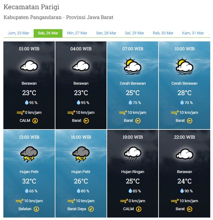 Laporan Harian & Prakiraan Cuaca Kabupaten Pangandaran – Sabtu, 26 Maret 2022
