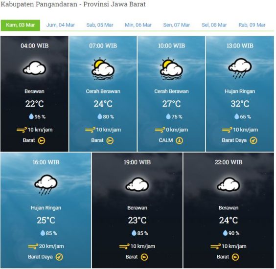Laporan Harian & Prakiraan Cuaca Kabupaten Pangandaran – Kamis, 03 Maret 2022