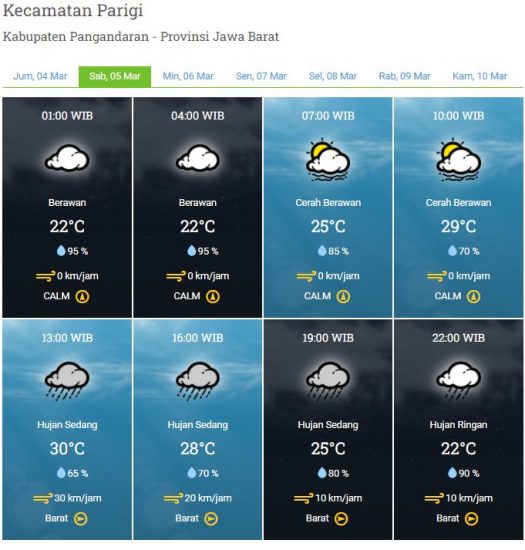 Laporan Harian & Prakiraan Cuaca Kabupaten Pangandaran – Sabtu, 05 Maret 2022
