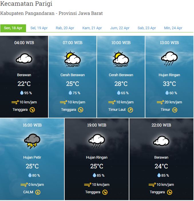 Laporan Harian & Prakiraan Cuaca Kabupaten Pangandaran – Senin, 18 April 2022
