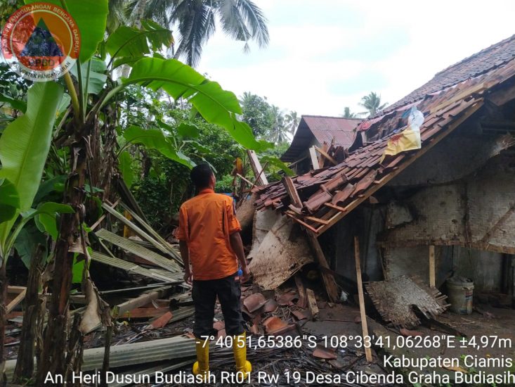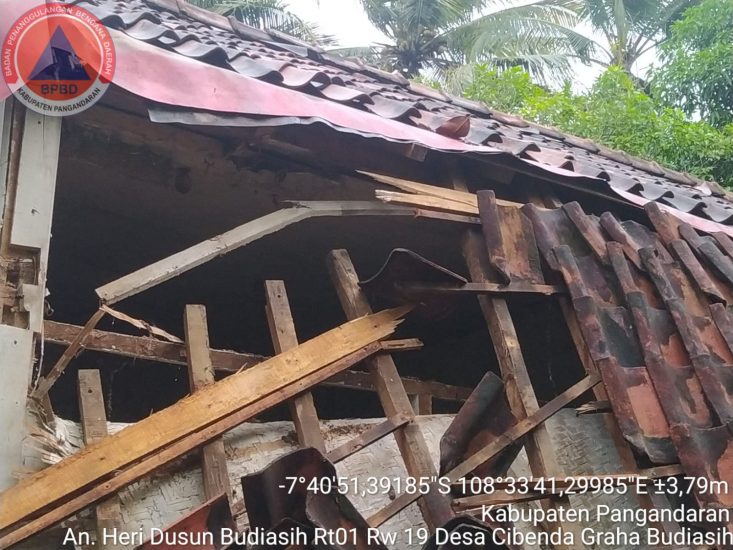 1 unit Rumah di bagian dapur ambruk / Rusak sedang akibat angin kencang milik an heri 1 kk 4 jiwa