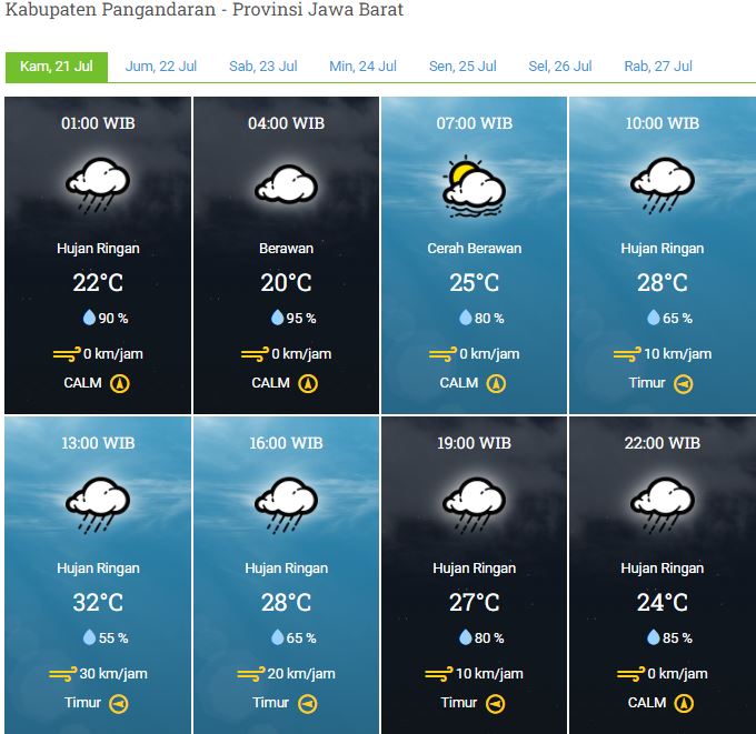 Laporan Harian & Prakiraan Cuaca Kabupaten Pangandaran – Kamis, 21 Juli 2022