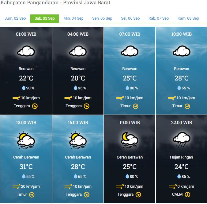 Laporan Harian & Prakiraan Cuaca Kabupaten Pangandaran – Sabtu, 03 September 2022