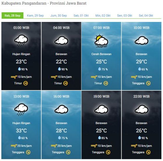 Peringatan Dini : Dimohon kepada masyarakat yang tinggal serta beraktivitas di pesisir sekitar area yang berpeluang terjadi gelombang tinggi dan saat ini hujan dengan intensitas tinggi melanda sebagian besar wilayah Kab. Pangandaran dimohon agar tetap selalu waspada.
