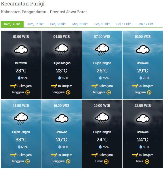 Laporan Harian & Prakiraan Cuaca Kabupaten Pangandaran – Kamis, 6 Oktober 2022