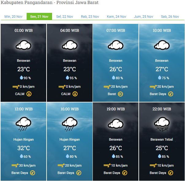 Laporan Harian & Prakiraan Cuaca Kabupaten Pangandaran – Senin, 21 November 2022