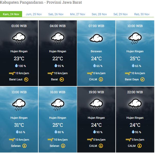 Laporan Harian & Prakiraan Cuaca Kabupaten Pangandaran – Kamis, 24 November 2022