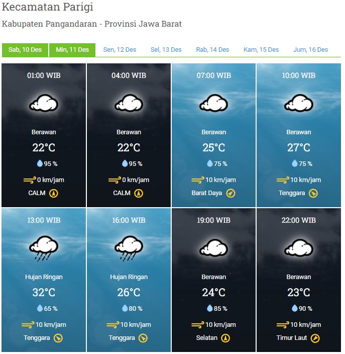 Laporan Harian & Prakiraan Cuaca Kabupaten Pangandaran – Sabtu, 10 Desember 2022