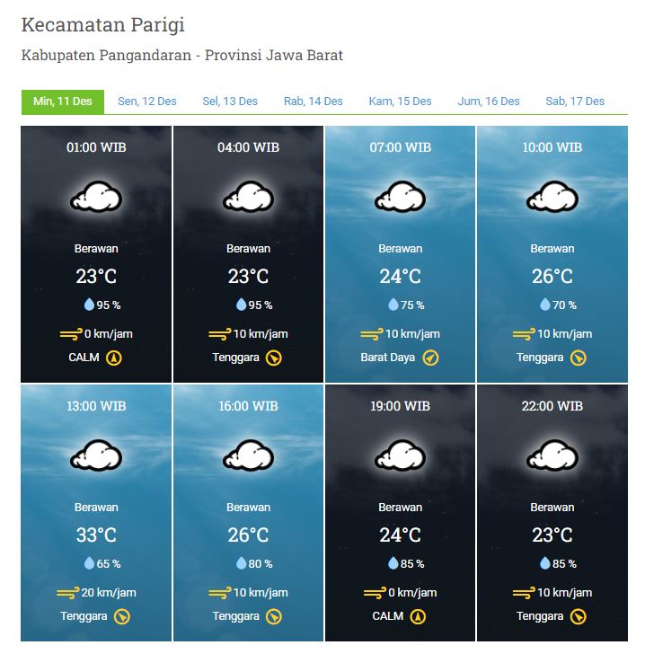 Laporan Harian & Prakiraan Cuaca Kabupaten Pangandaran – Minggu, 11 Desember 2022