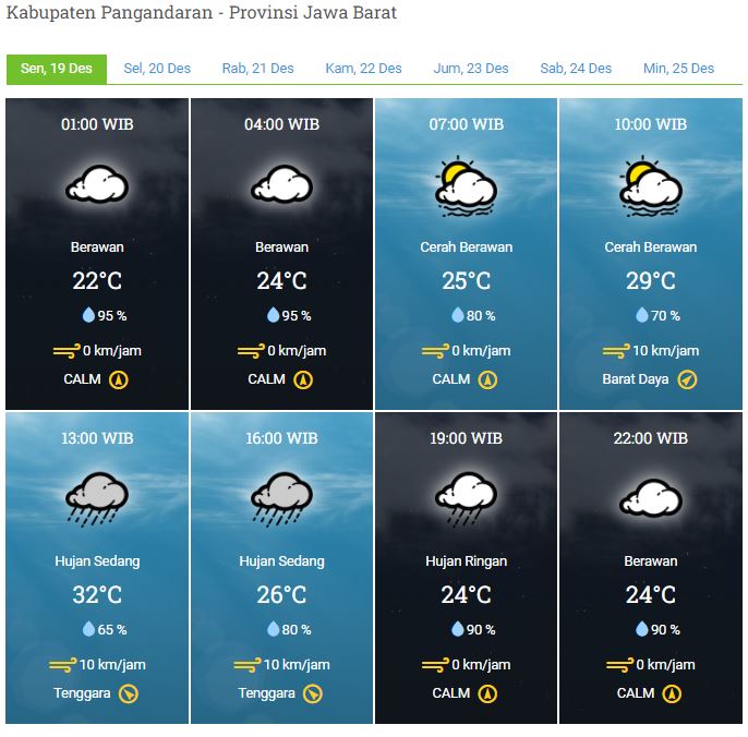 Laporan Harian & Prakiraan Cuaca Kabupaten Pangandaran – Senin, 19 Desember 2022