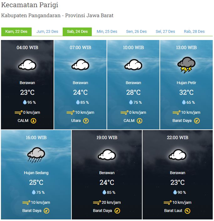 Laporan Harian & Prakiraan Cuaca Kabupaten Pangandaran – Kamis, 22 Desember 2022