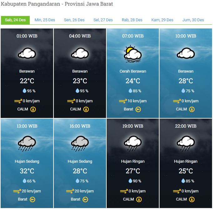 Laporan Harian & Prakiraan Cuaca Kabupaten Pangandaran – Sabtu, 24 Desember 2022