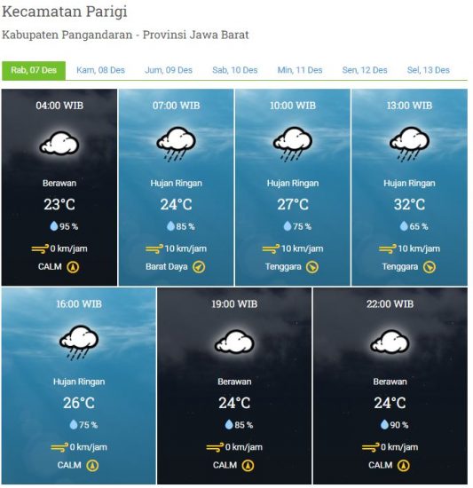 Laporan Harian & Prakiraan Cuaca Kabupaten Pangandaran – Rabu, 7 Desember 2022