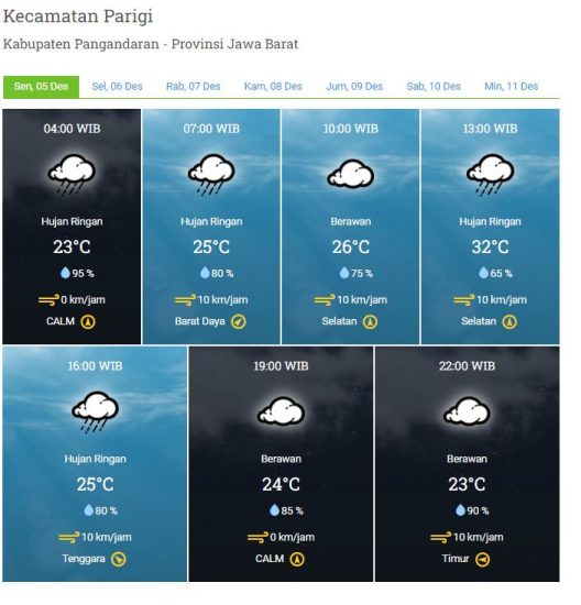 Laporan Harian & Prakiraan Cuaca Kabupaten Pangandaran, Senin, 05 Desember 2022