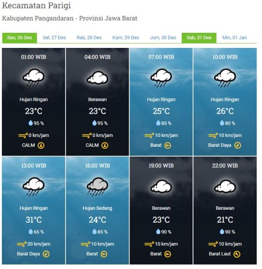 Laporan Harian & Prakiraan Cuaca Kabupaten Pangandaran – Senin, 26 Desember 2022