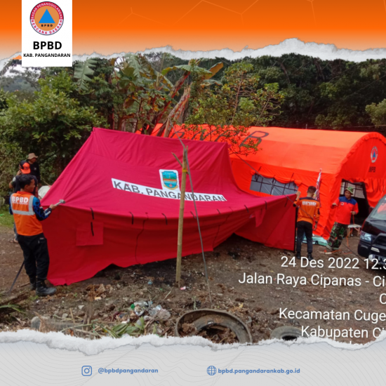 Sementara itu tim dari BPBD Kab. Pangandaran lanjut pemasangan tenda pengungsi di beberapa titik lokasi pengungsian.