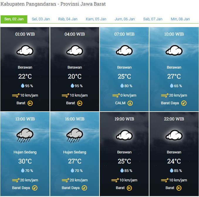 Laporan Harian & Prakiraan Cuaca Kabupaten Pangandaran – Senin, 02 Januari 2023