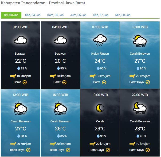 Laporan Harian & Prakiraan Cuaca Kabupaten Pangandaran – Selasa, 3 Januari 2023