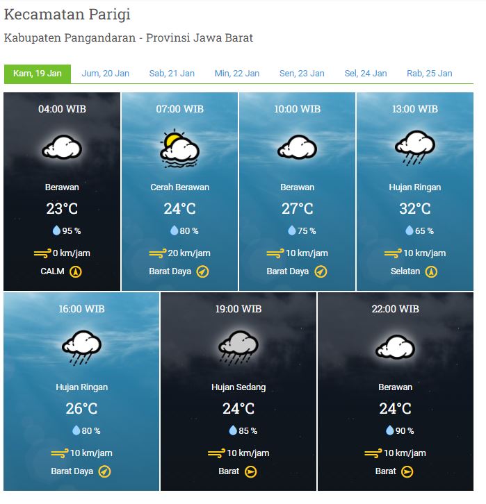 Laporan Harian & Prakiraan Cuaca Kabupaten Pangandaran – Kamis , 19 Januari 2023