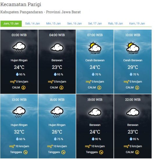 Laporan Harian & Prakiraan Cuaca Kabupaten Pangandaran – Jumat, 13 Januari 2023