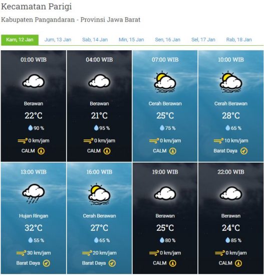 Kecepatan Angin : 0 – 20 km/jam